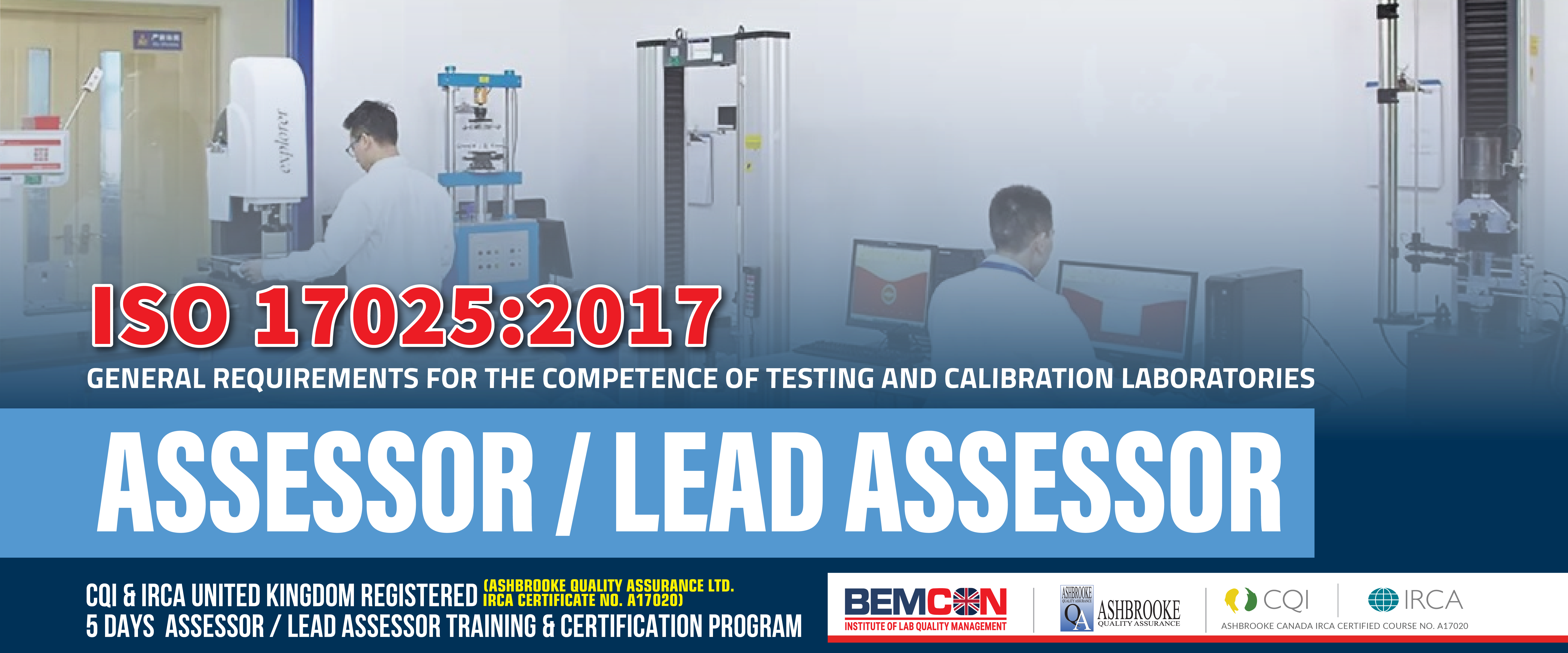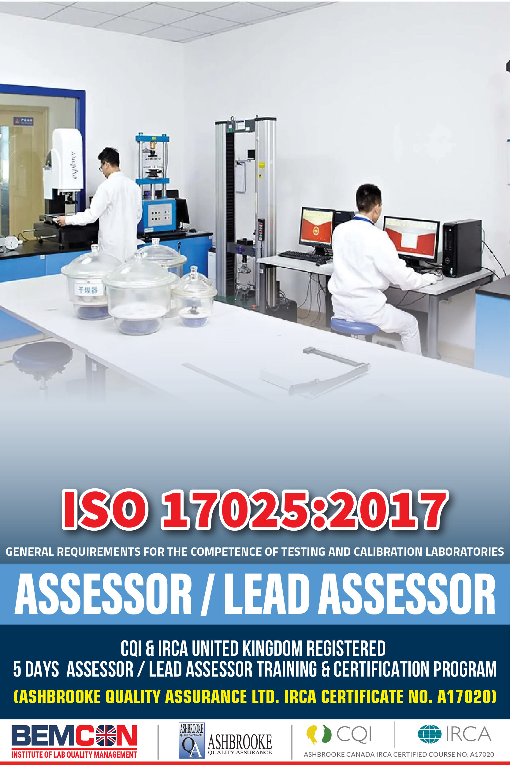 Ashbrooke’s 5-day ISO/IEC 17025:2017 Assessor/Lead Assessor Training Cours is designed to develop the necessary expertise to audit a Laboratory Management System based on the updated ISO/IEC 17025:2017 standard requirements Participants will cover the full range of assessment techniques, good practices, and assessor responsibilities and gain practical experience of planning, running, and reporting on assessments; after which each successful delegate will have earned his/her training qualification for certification as an IRCA Lab QMS Auditor / Lead Auditor.